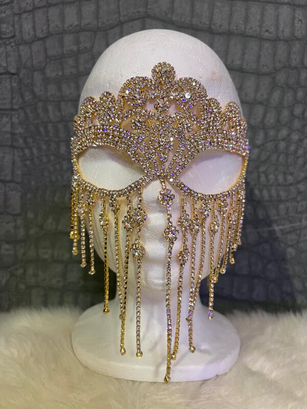 De schittering van de strassstenen is oogverblindend mooi en zal je outfit zeker afmaken. Dit elegante masker is een lust voor het oog. Beschikbaar in zilver en Goud