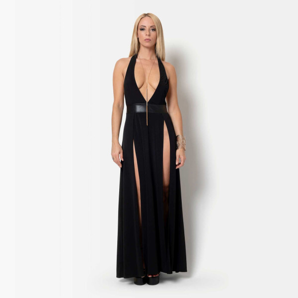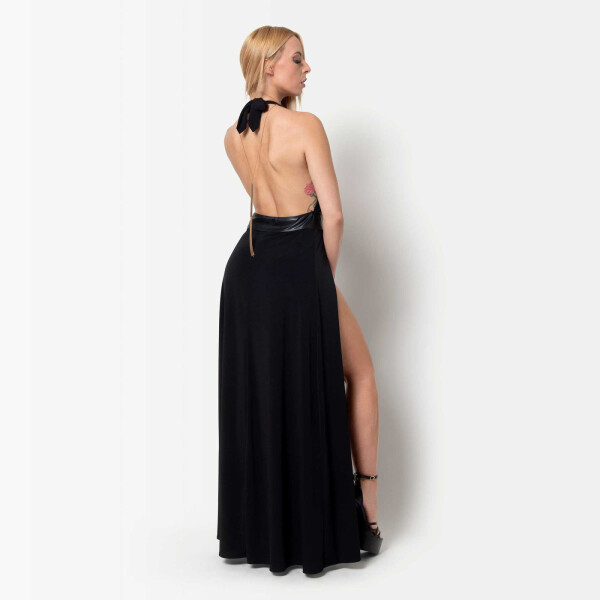 Isabella is een lange jurk gemaakt van lycra. De borst wordt geaccentueerd dankzij de diepte van de halslijn en de rug is bloot. Een band van imitatieleer accentueert de taille. De bovenkant van de jurk sluit bij de nek met een knoop waardoor je de hoogte kunt aanpassen aan je borst. Twee lange splitten, beginnend bij de heupen, laten je benen aan de voorkant zien, voor een nog sexyer tintje