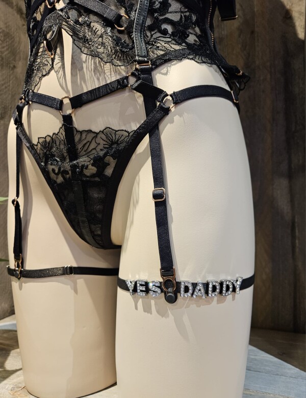 Enkel beenbandje gemaakt van elastisch materiaal, met in zilveren strass "Yes Daddy".