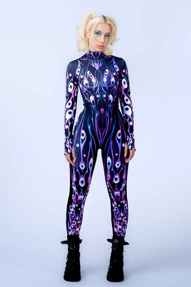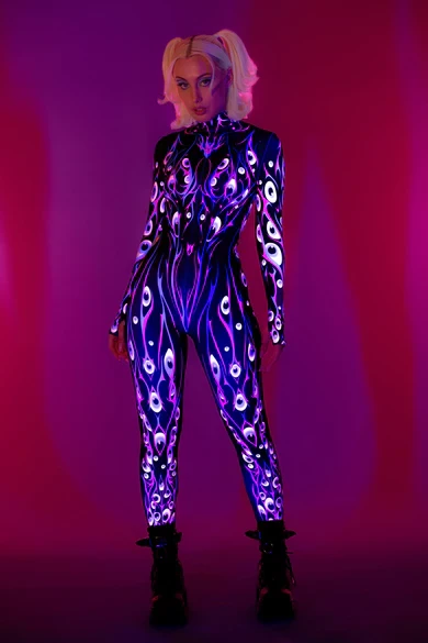Op zoek naar iets bijzonders? Wij hebben onze ogen laten vallen op dit voortreffelijke ontwerp en geloof ons, dit is een blijvertje. Deze kledingstuk combineert moeiteloos comfort en uitstraling, met een ademende stof die je vormen omlijst en een opvallend dessin dat tot leven komt wanneer het licht dimt. Maak je volgende festivalervaring onvergetelijk en bemachtig deze prachtige catsuit. Combineer het met een paar van je favoriete schoenen en ga ervoor.